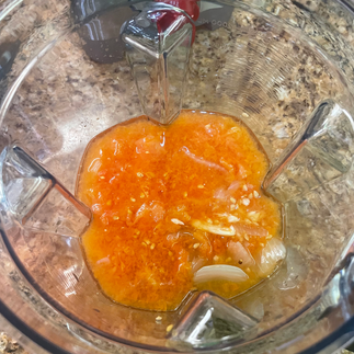 4-5 tomates, 3 ajos, media cebolla, lo pones a hervir con poquita agua